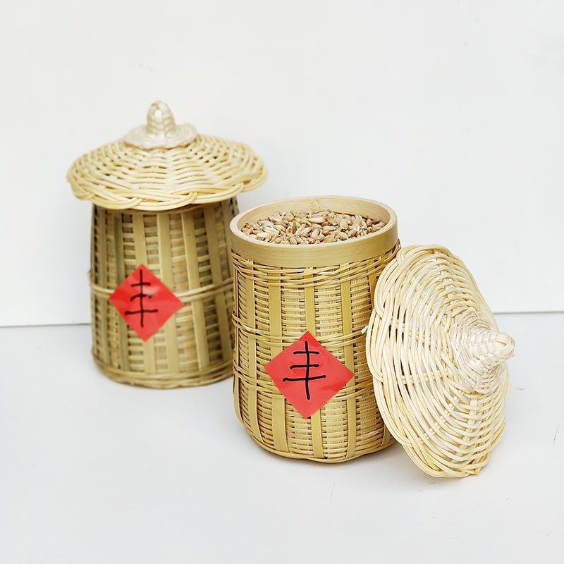 速发五谷杂粮丰收仓摆件收纳纯手工竹编小茶叶娄茶叶罐零食话梅罐