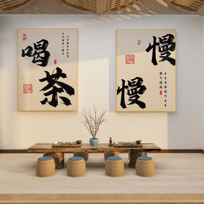 茶室氛围布置茶叶店背景墙面装饰画茶馆道文化贴纸民宿小院高级感