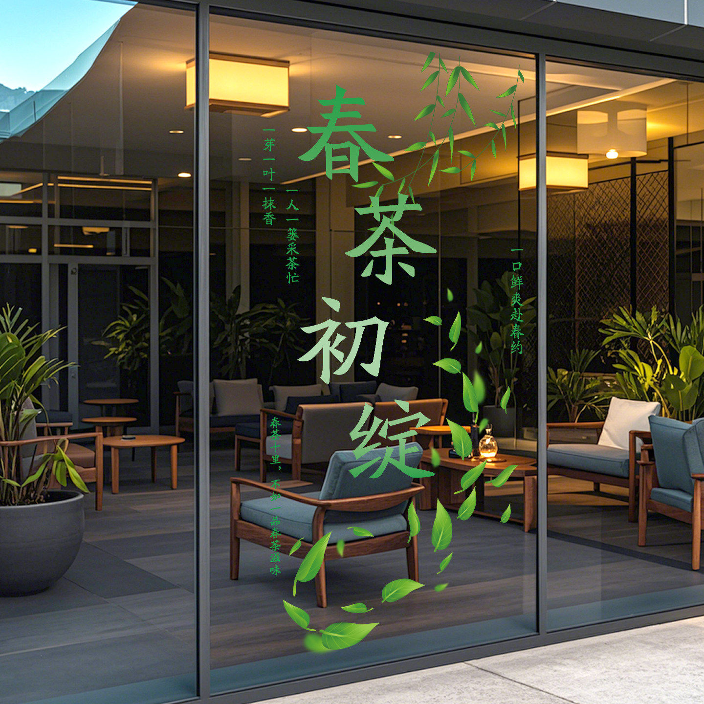 茶叶店茶楼茶行茶馆橱窗玻璃贴门春茶静电装饰贴新茶上市广告贴纸