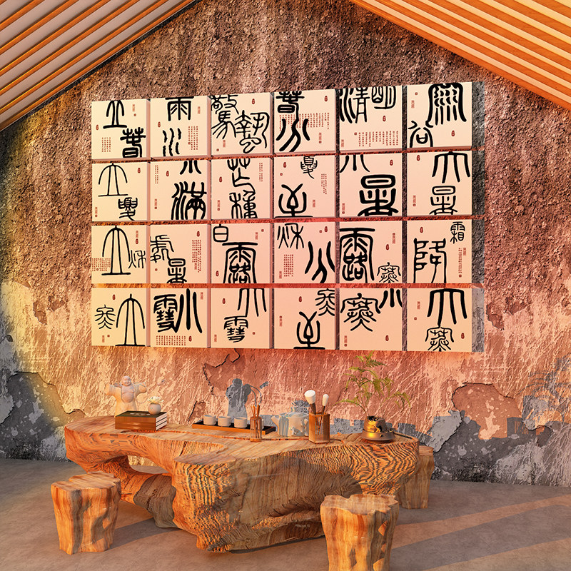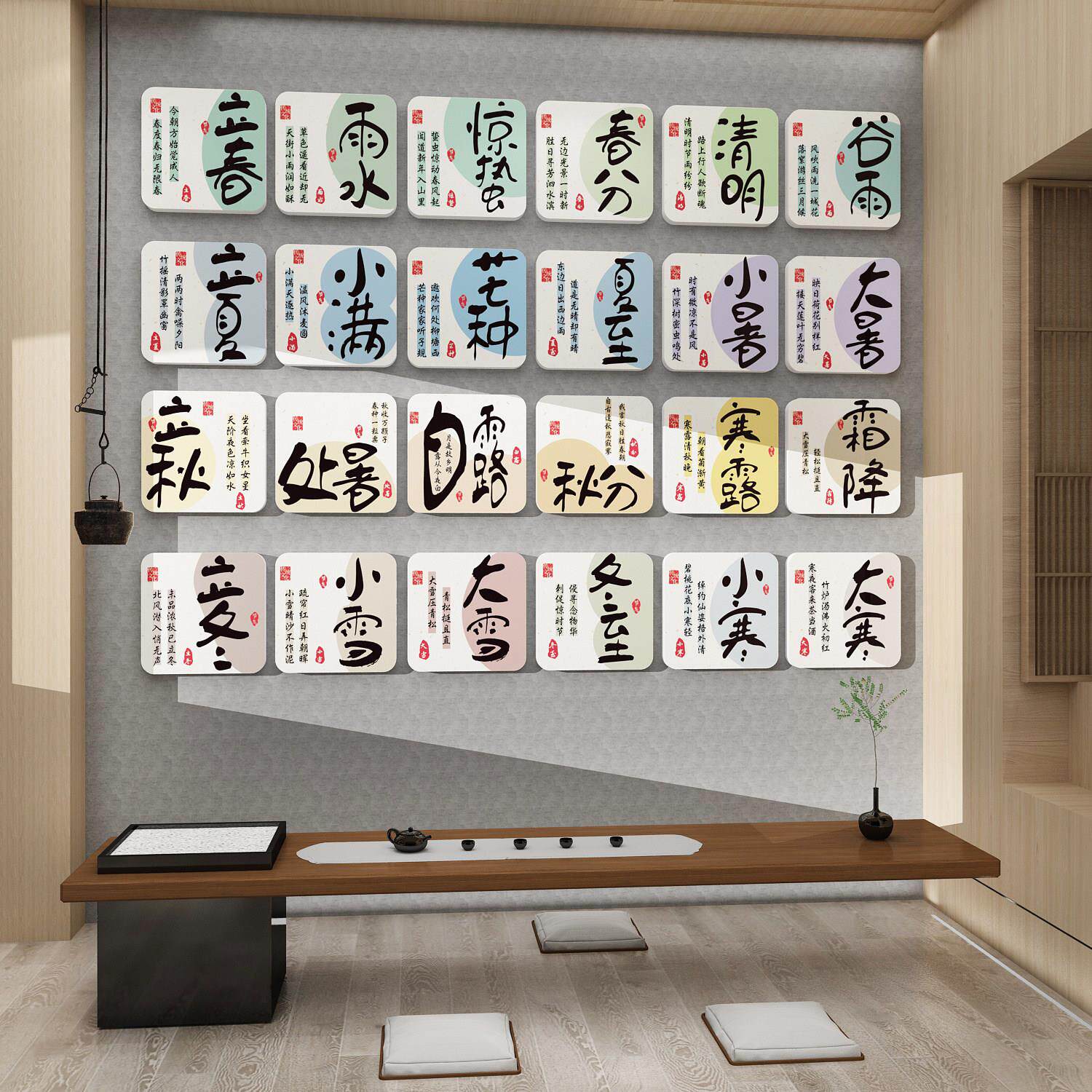 茶室背景墙装饰二十四节气文化墙新中式古风茶叶店氛围布置贴画24