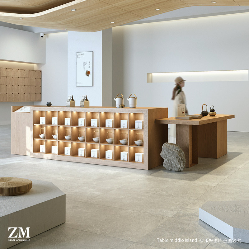 中岛台新派茶室流水台新式茶居茶叶展示柜中式货架商品陈列柜长桌