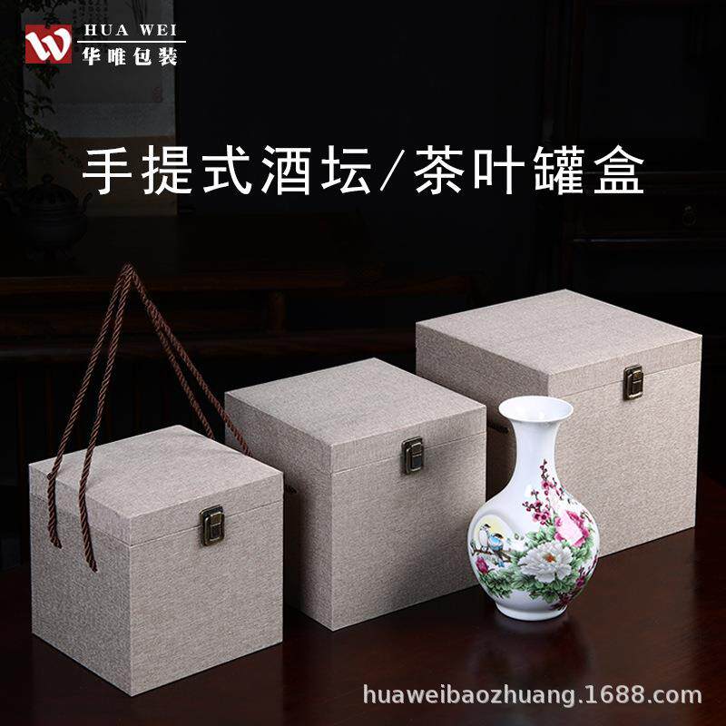 大正方形茶叶罐锦盒麻布银壶礼品盒 陶瓷花瓶手提包装盒