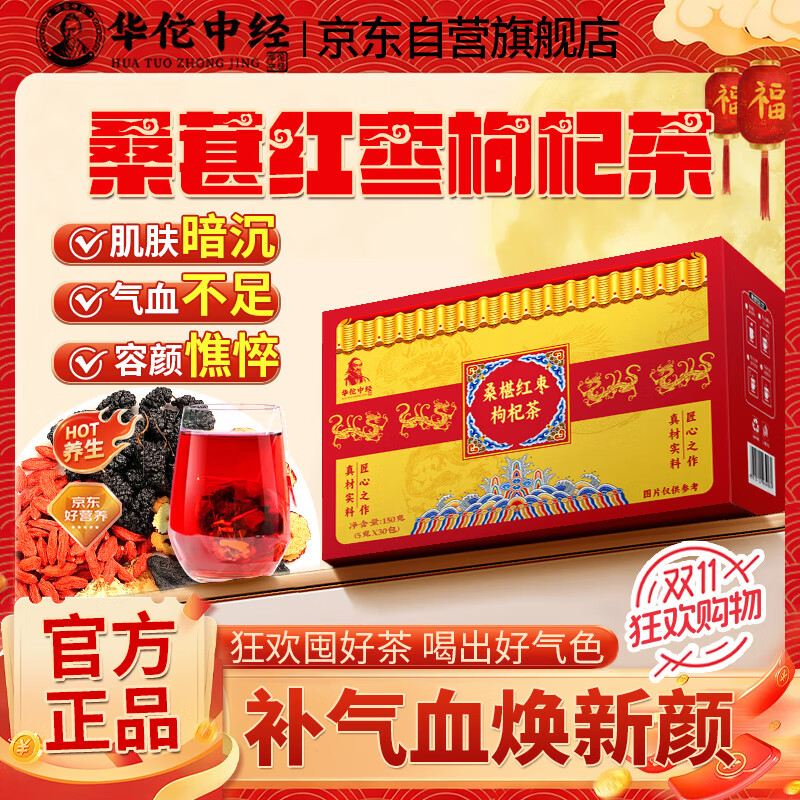 华佗中经桑葚红枣枸杞黑枸杞养生茶男士泡水喝的茶包果茶熬夜茶叶泡茶150g