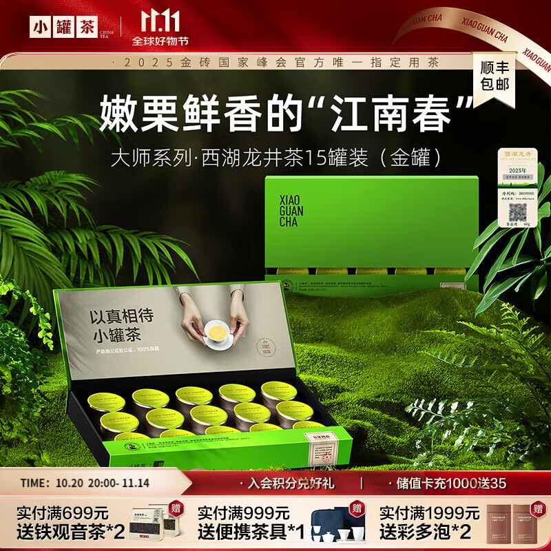 小罐茶【25新茶】茶叶礼盒 绿茶 2025春茶特级金罐明前西湖龙井礼盒 4g*15罐