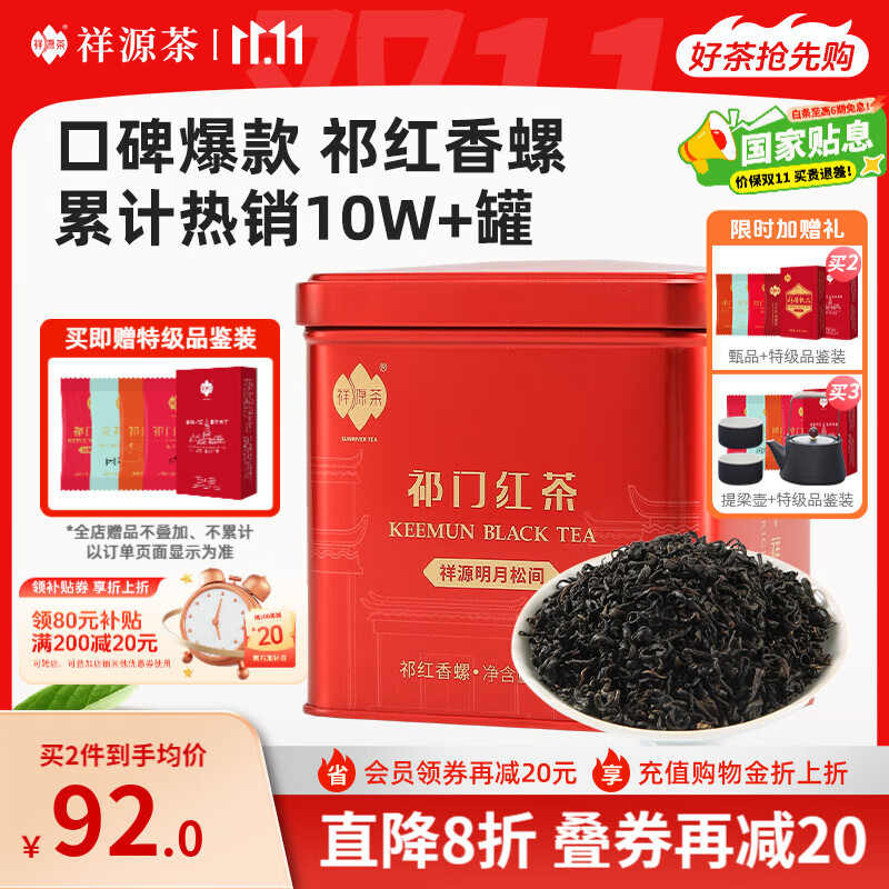 祥源茶 明月松间祁门红茶 特级正宗蜜香祁红香螺 2025新茶叶自己喝送礼 经典大红罐装150g