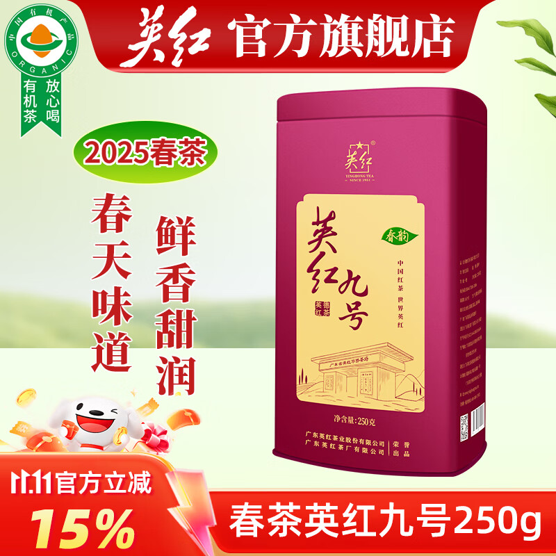 英红牌英红九号2025年新茶有机茶叶浓香型红茶大份量罐装250g自饮