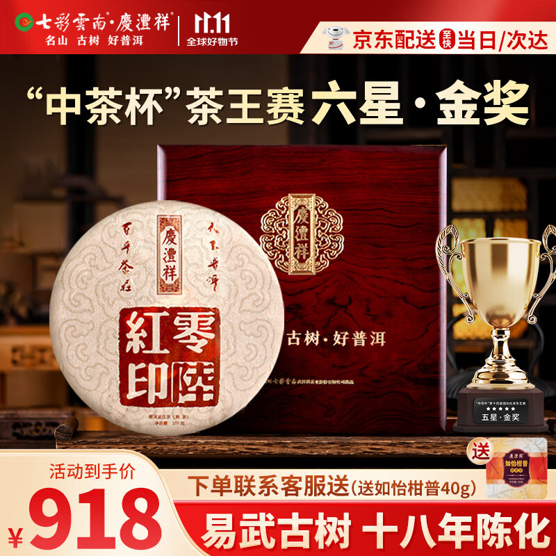 七彩云南普洱茶 2006年易武古树普洱熟茶饼 零陆红印357g送礼高档茶叶礼盒