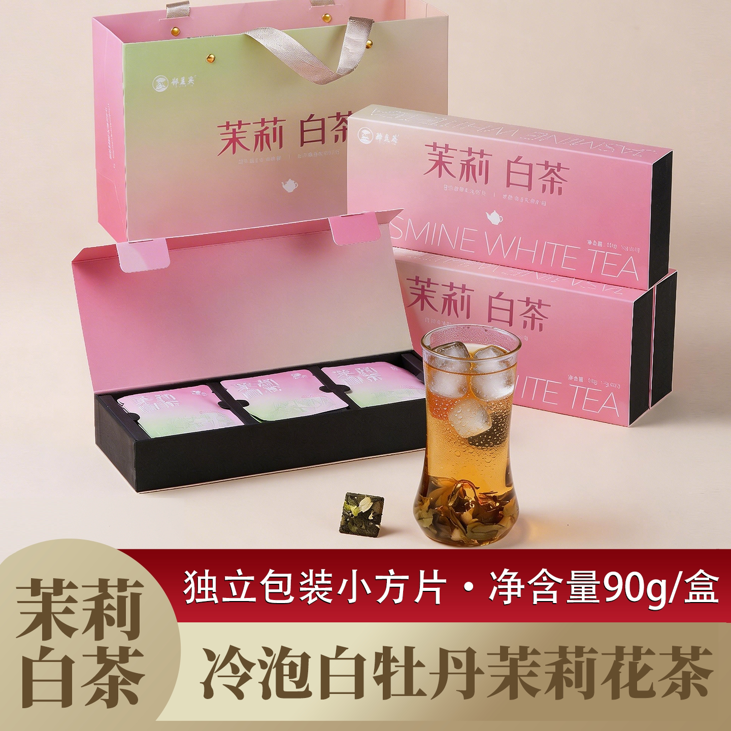 郑莲英茉莉白茶冷泡茶福鼎白茶白牡丹茉莉花茶小方片茶叶礼盒装