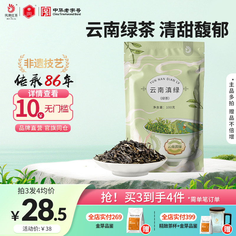 凤牌高山绿茶春茶明前绿茶头采烘青正宗凤牌云南茶叶散装100g