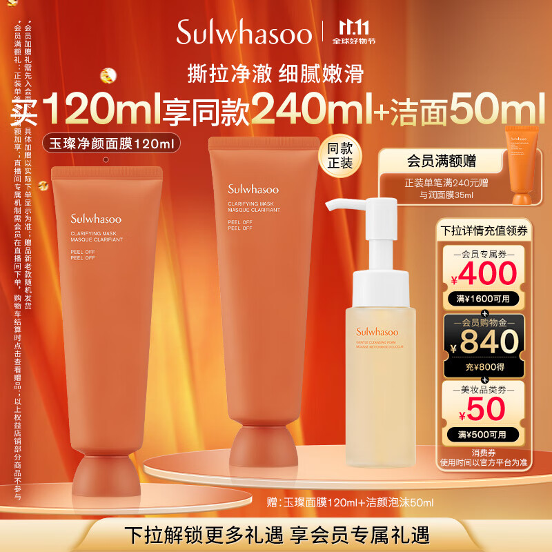 雪花秀玉璨净颜撕拉面膜120ml升级清洁毛孔去角质黑头礼物