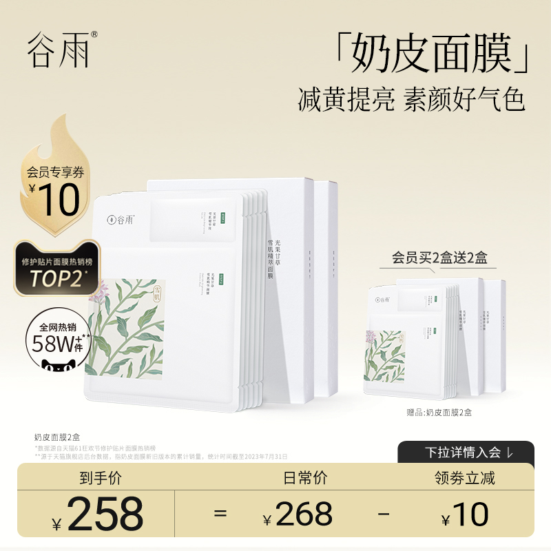 【双11抢购】谷雨精华奶皮面膜美白补水去黄气暗沉提亮肤色淡斑