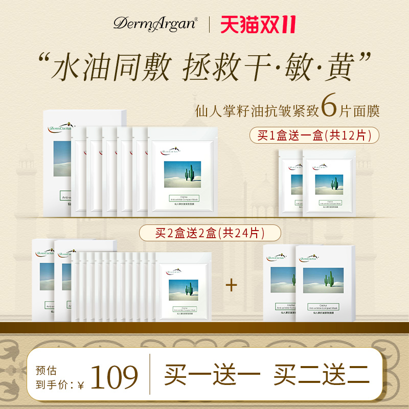 Derm黛摩仙人掌面膜补水保湿抗皱紧致油敷面膜6片