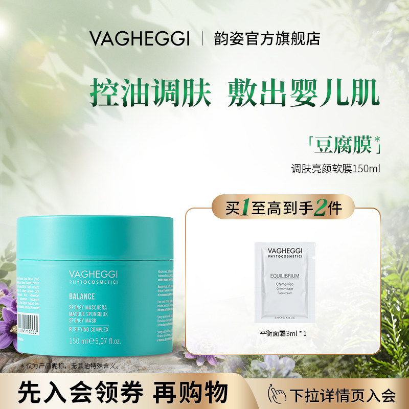 【韵姿官方正品】VAGHEGGI深层控油面膜白泥膜易卸不拔干豆腐膜