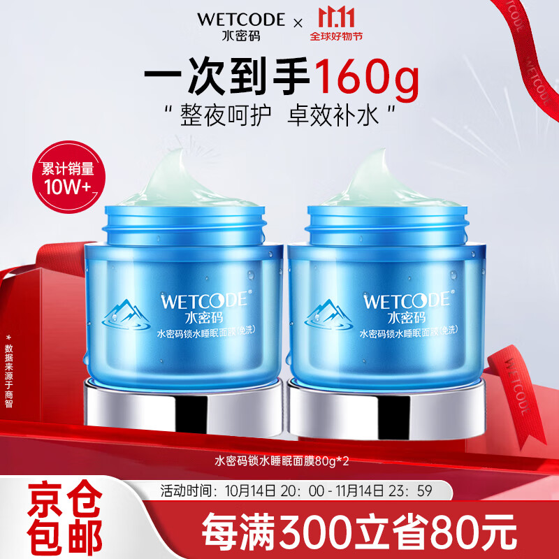 水密码面膜护肤品免洗面膜补水保湿滋润冰川系列生日礼物送女友 【2瓶】水密码80g锁水睡眠面膜 1