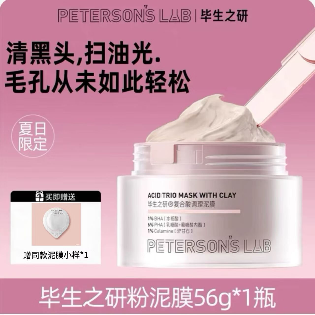 毕生之研粉泥膜56g水杨酸涂抹清洁面膜多酸深层去黑头闭口毛孔油皮女男 粉泥膜【送2颗泥膜小样*2】 56g