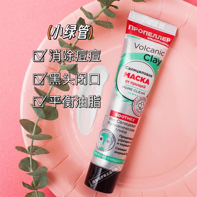 螺旋桨俄罗斯面膜祛痘深层清洁控油黑头毛孔水杨酸火山泥40ml 小绿管