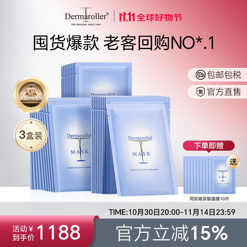 Dermaroller德国进口院线玻尿酸精华面膜补水保湿修护晒后急救舒缓维稳 10片*3盒装