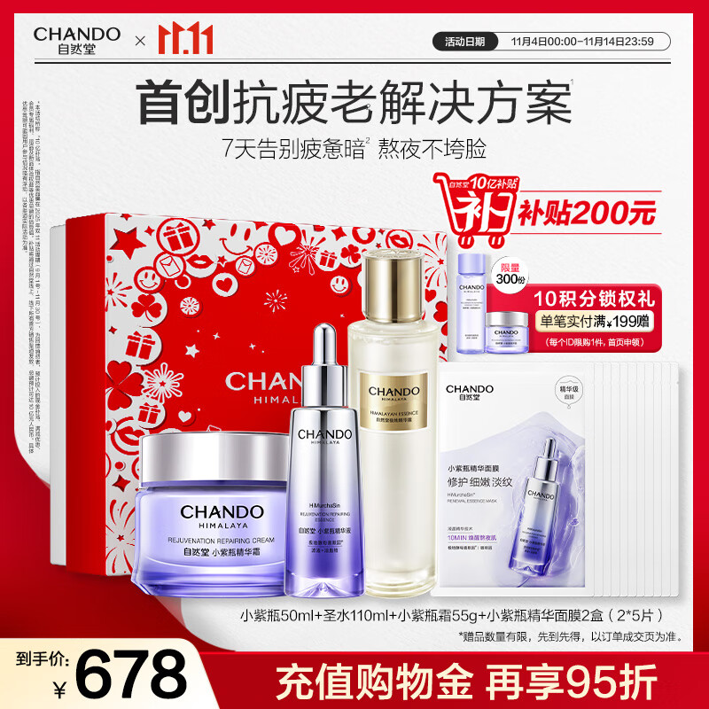 自然堂小紫瓶水乳套装 修护抗皱紧致提亮抗疲老护肤品礼物 【喜默因全家桶】小紫瓶+圣水+精华霜+面膜