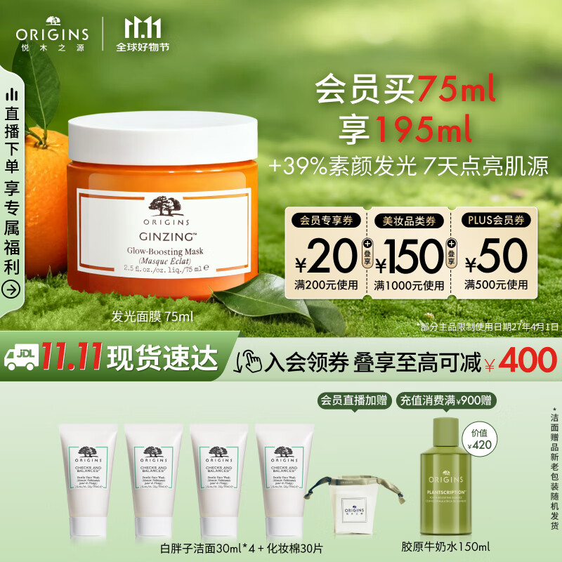 悦木之源(Origins)爆珠奶昔发光面膜75ml提亮肤色补水保湿锁水素颜生日礼物送女友