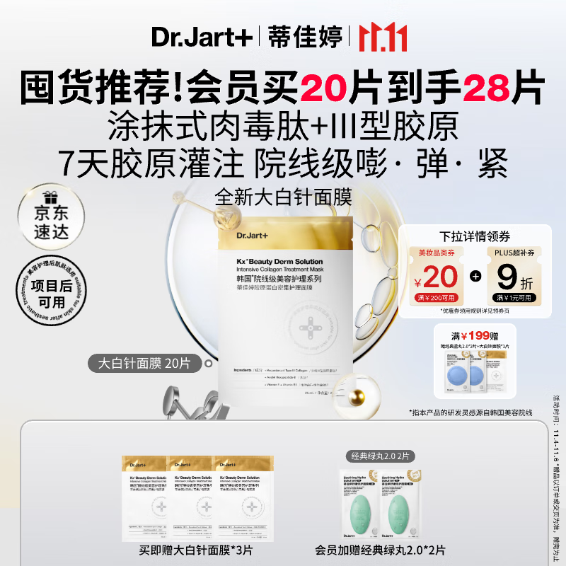 蒂佳婷(Dr.Jart)【重磅新品】胶肽大白针面膜20片 胶原灌注 抗皱紧致 生日礼物