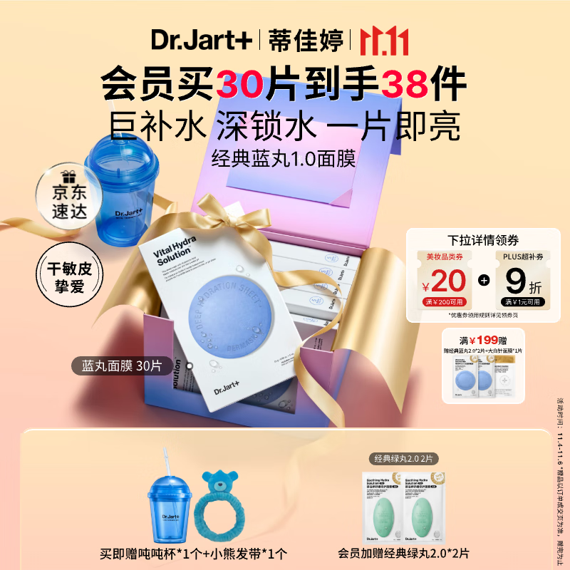 蒂佳婷(Dr.Jart) 深度补水蓝丸面膜5片*6盒 生日礼物 礼盒