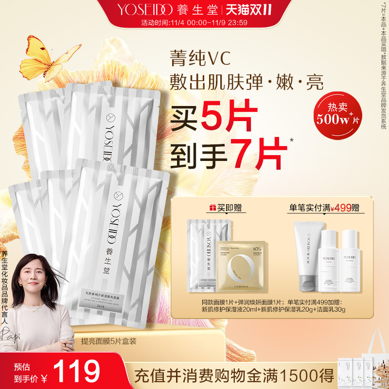 养生堂天然桦树汁保湿提亮面膜水润温和滋润面部焕亮肤色5片
