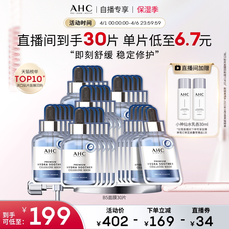 【直播专享】AHCB5玻尿酸安瓶面膜6盒补水保湿焕亮官方旗舰店正品