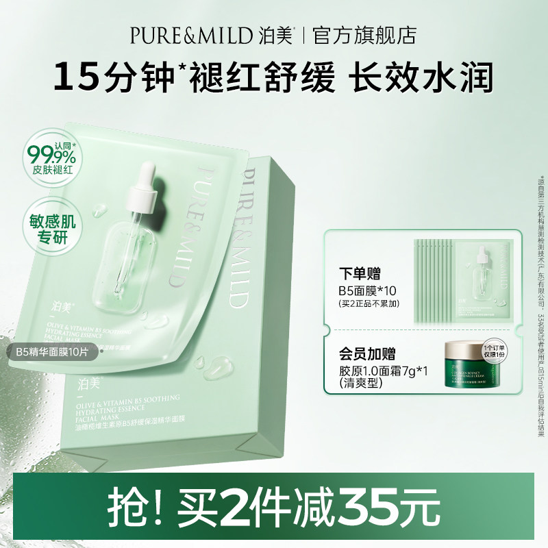 泊美油橄榄面膜保湿改善泛红敏感肌B5精华玻尿酸舒缓面膜官方正品