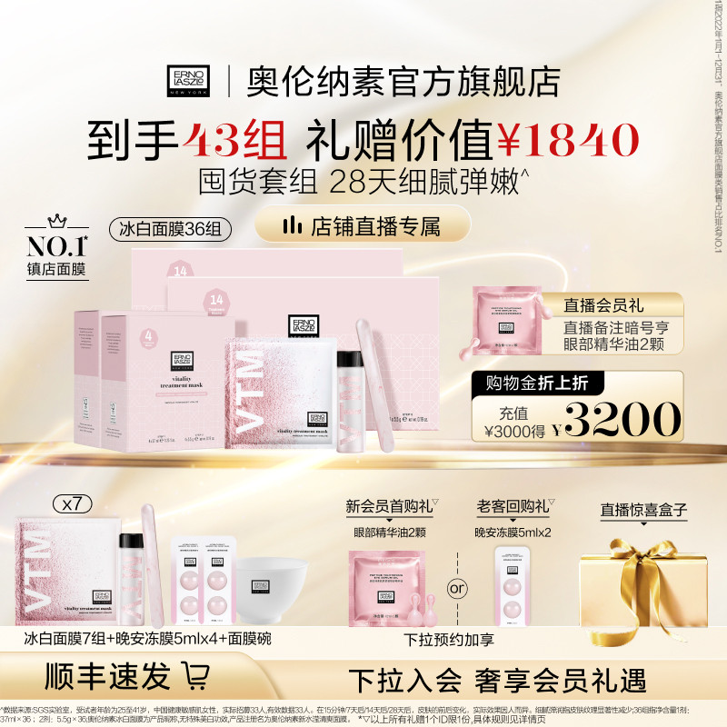 【自播专享立减】奥伦纳素冰白面膜43组涂抹面膜自调泥膜软膜