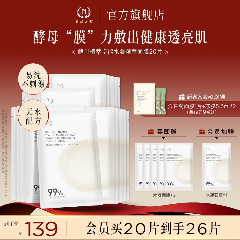 自然之名二裂酵母植萃卓能水凝精萃面膜贴片补水保湿嫩肤官方正品