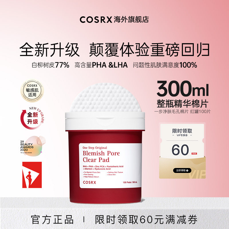 COSRX水杨酸收缩毛孔清洁棉片100片补水修护湿敷棉祛痘贴片面膜