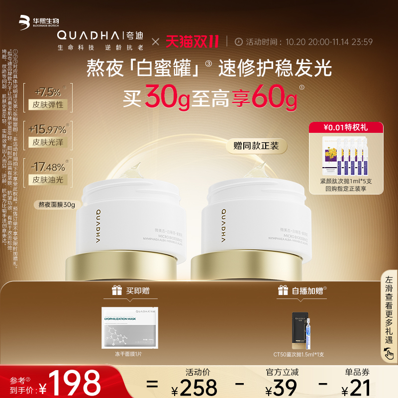 【双11现货狂欢】华熙生物夸迪熬夜面膜涂抹式睡眠面膜免洗抗皱