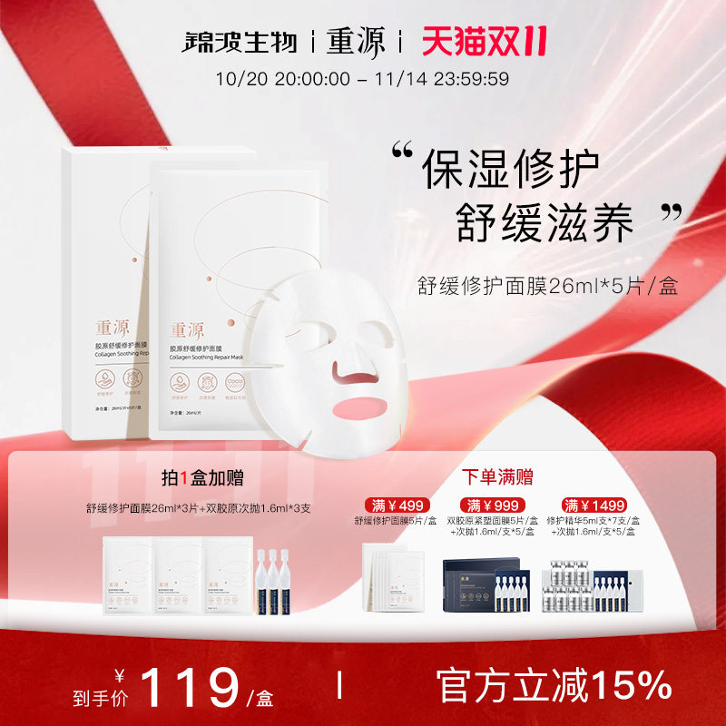 源69!绽美娅舒缓保湿沁润面膜5片/盒积雪草补水锁水维稳修护褪红