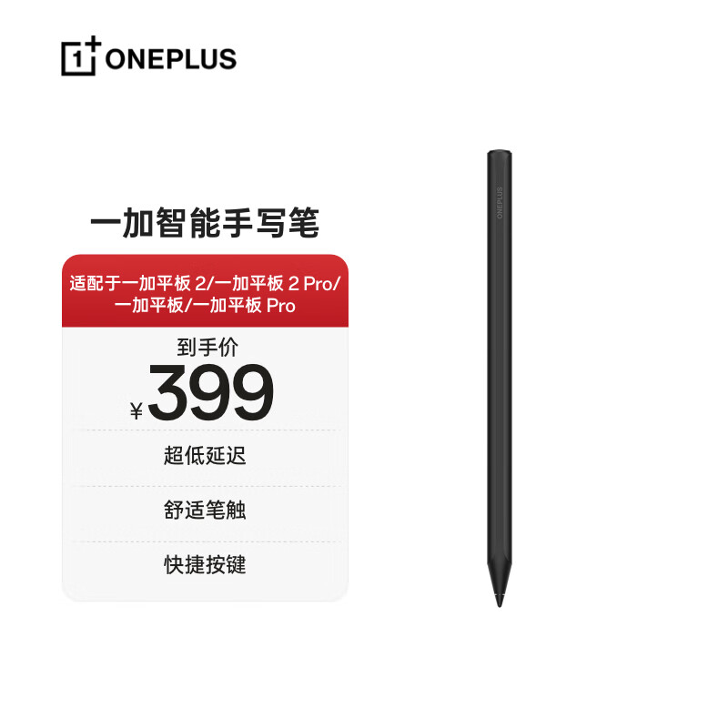 一加智能手写笔 适配于一加平板/一加平板 Pro/一加平板 2 Pro/一加平板 2 超低延迟 舒适笔触 黑色
