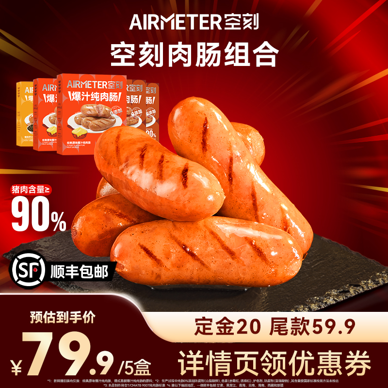 【先加购 7日早10付定】空刻旗舰店法式爆汁原味黑椒味烤肠5盒装