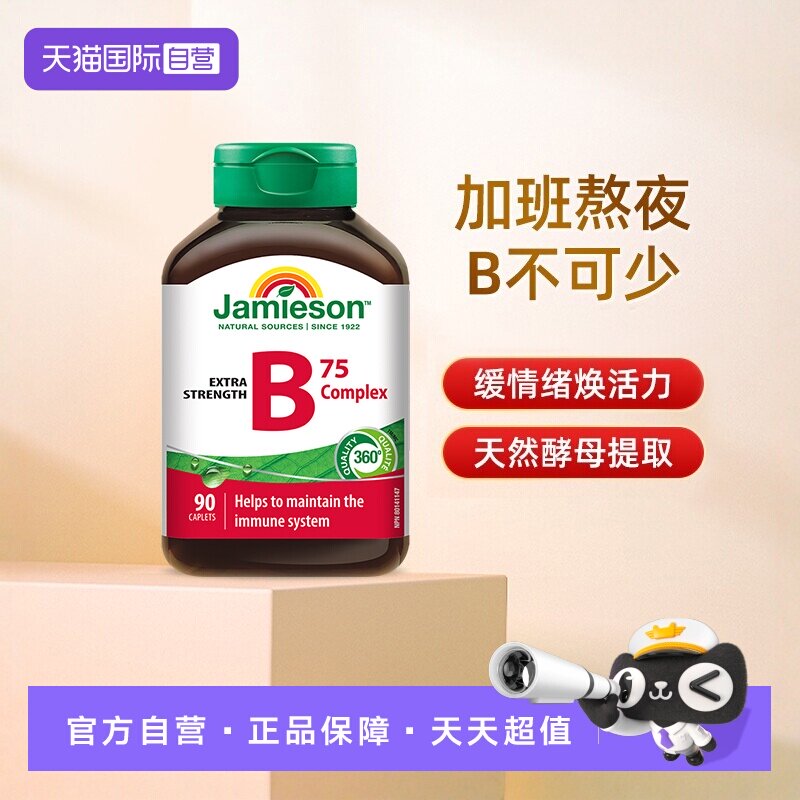 【自营】jamieson健美生B族维生素B天然肌醇B5复合B成人90粒熬夜