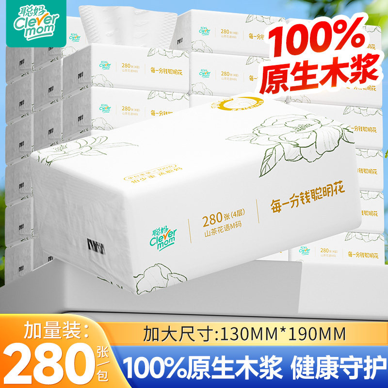 聪妈山茶花抽纸巾家用实惠装整箱婴儿面巾纸学生宿舍餐巾纸卫生纸