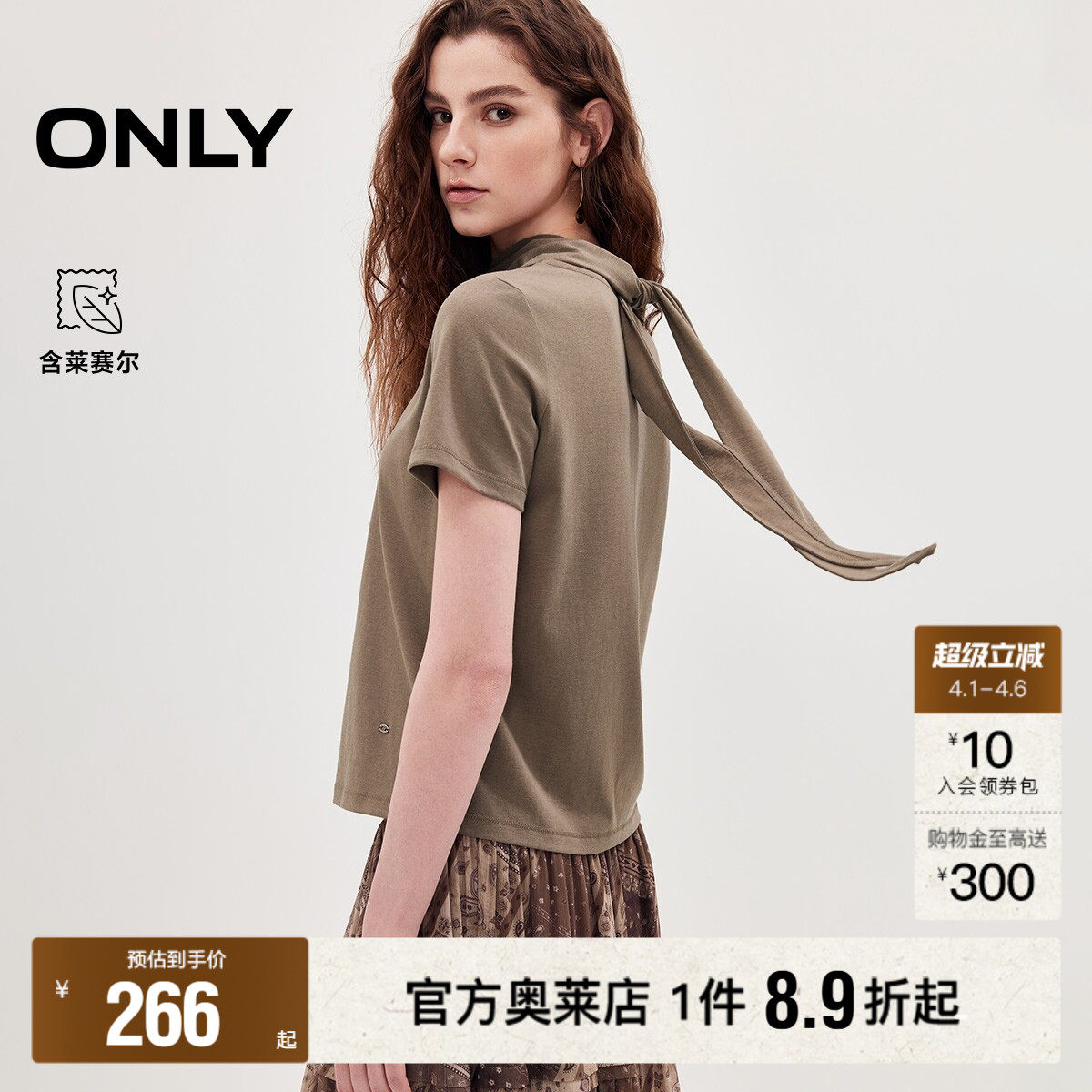 ONLY2026夏季新款含莱赛尔通勤纯色短袖上衣飘带装饰正肩T恤女