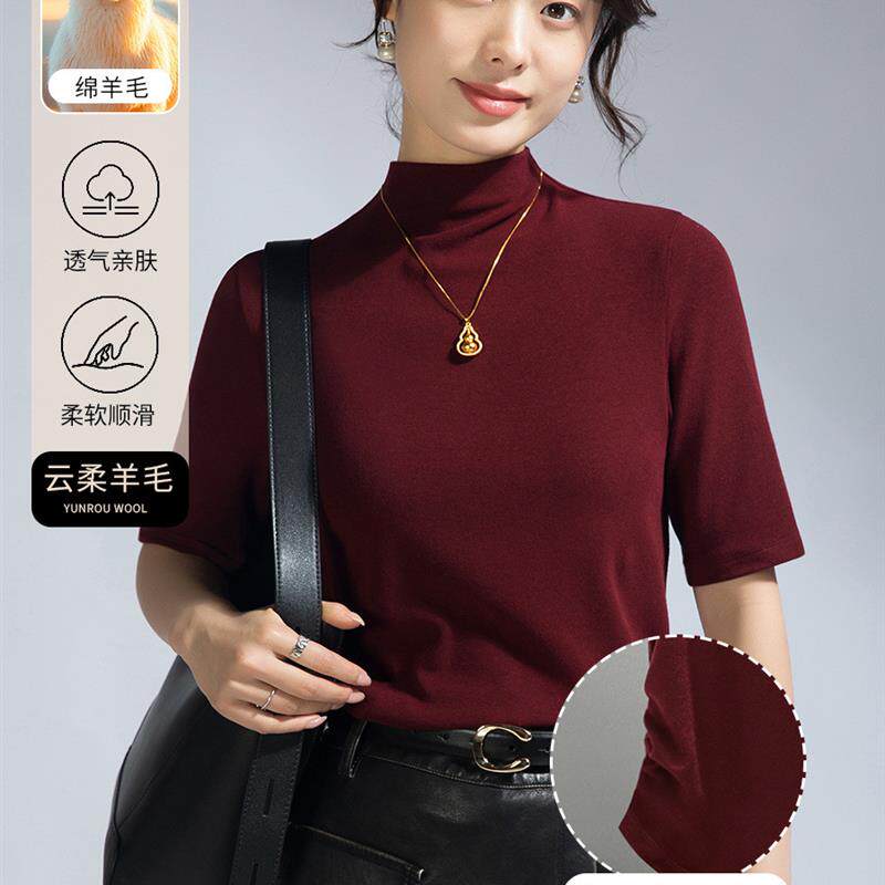 正肩T恤女春季2026新款羊毛抽褶中袖掐腰设计感五分袖打底衫上衣