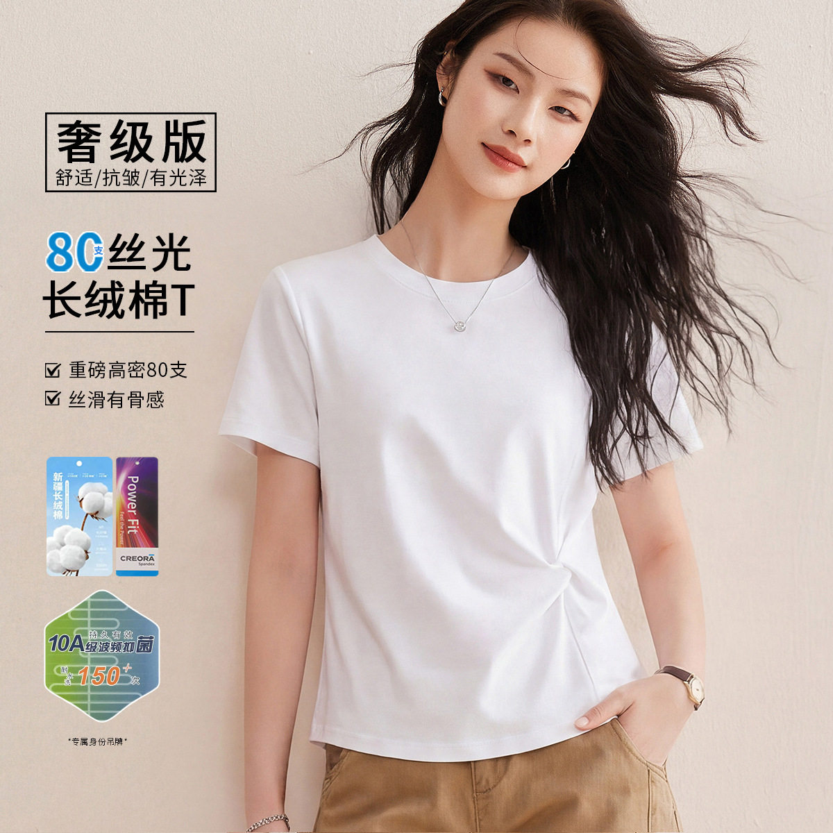 极速大码宽松白色t恤女2s025新款减龄夏装气质显瘦短袖圆领不规则