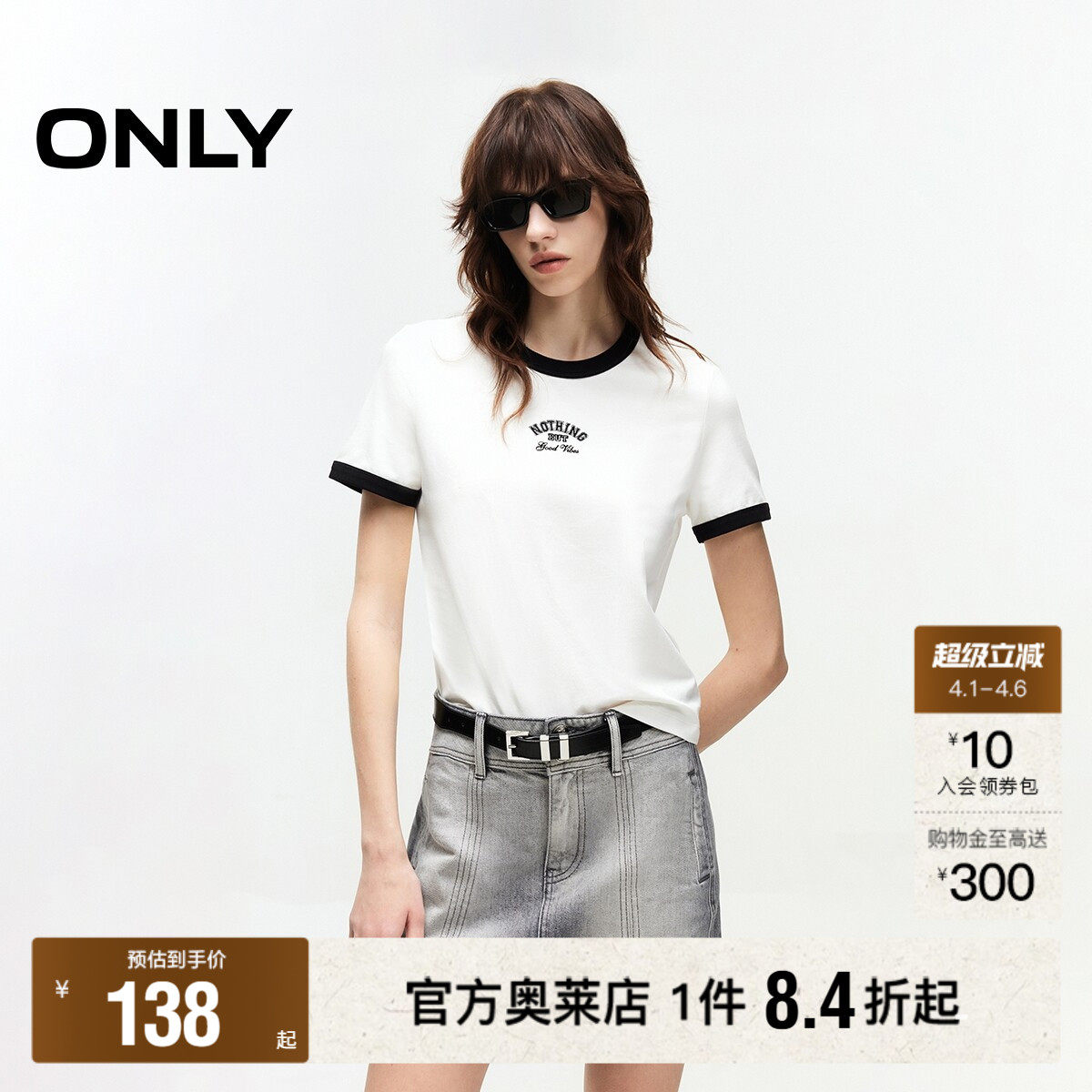 【ONLY奥莱】春夏新款休闲舒适撞色设计圆领显瘦正肩短袖T恤女