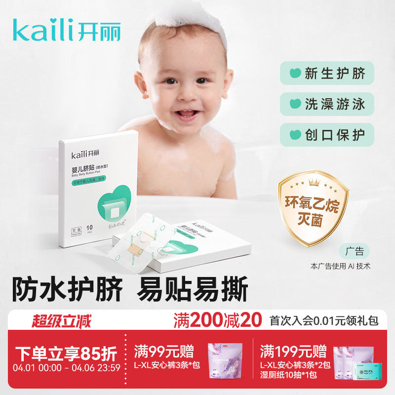 开丽婴儿肚脐贴新生儿透气护脐贴宝宝洗澡游泳防水脐带贴易撕