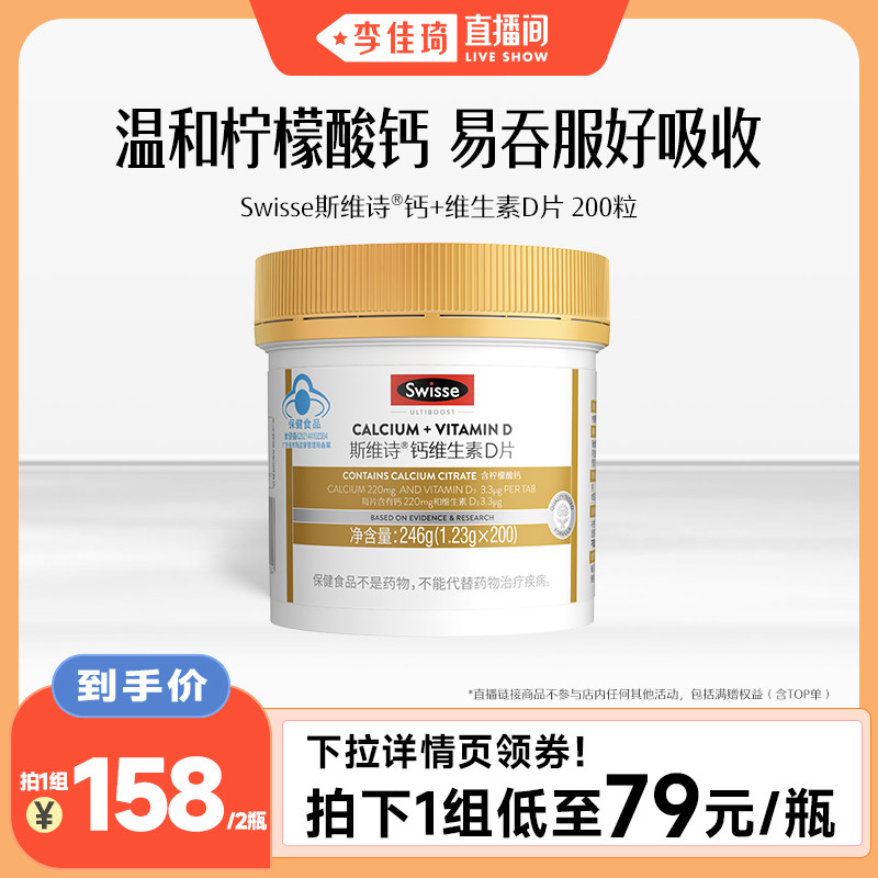 【李佳琦直播间】Swisse斯维诗钙片中老年维生素d柠檬酸钙片补钙