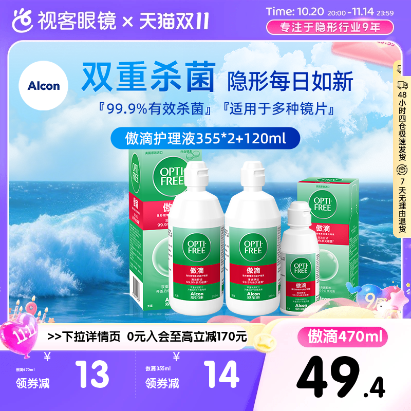 爱尔康傲滴恒润乐明护理液355*2+60ml隐形眼镜美瞳清洗液官网正品