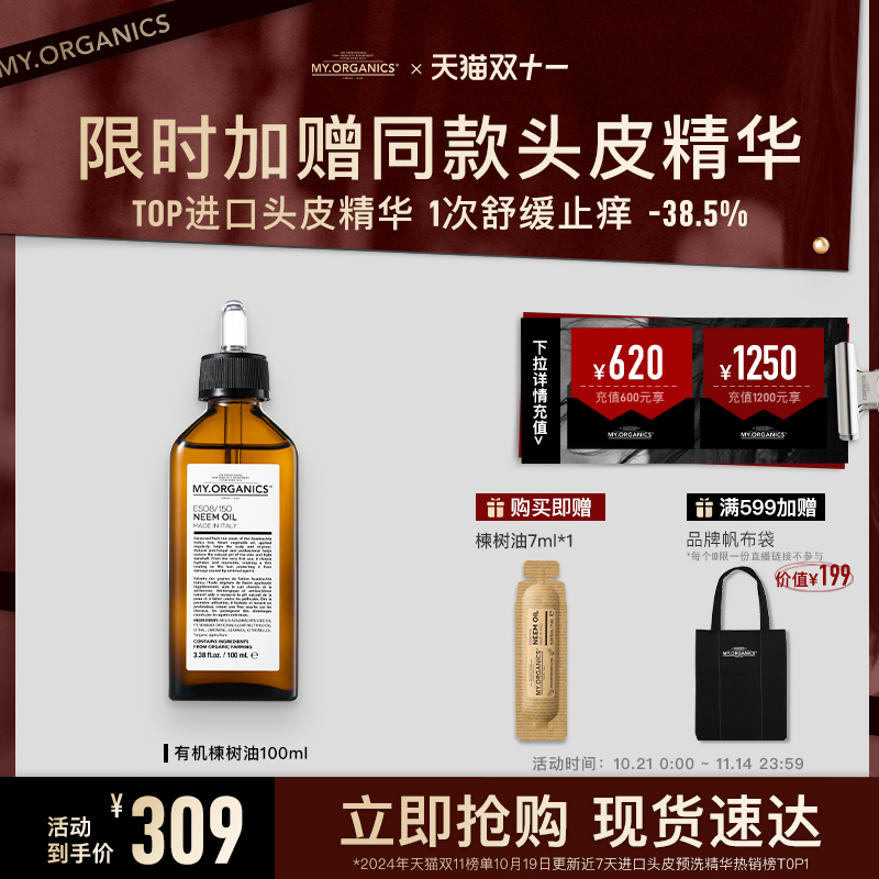 【现货抢购】myorganics有机苦楝树油头皮精华护理预洗止痒精油