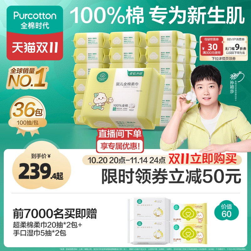 【孙颖莎同款】全棉时代洗脸巾婴儿棉柔巾纯棉干湿巾两用新生儿童