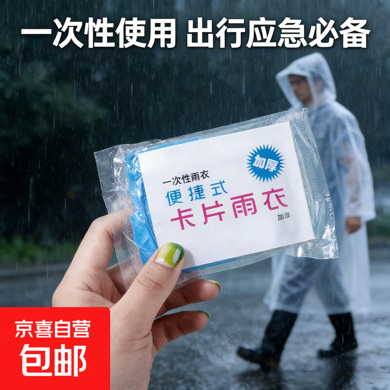 一次性雨衣真空压缩卡片包装户外漂流旅游成人儿童加厚款均码雨披 一次性卡片雨衣 均码: 便于携带【1个装】
