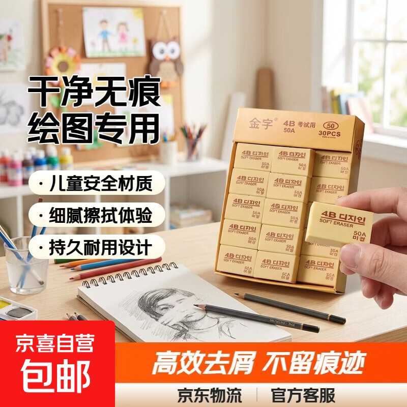 橡皮擦干净无痕4B小学生橡皮擦幼儿园儿童2b橡皮美术生绘图专用 【50A】黄色3个
