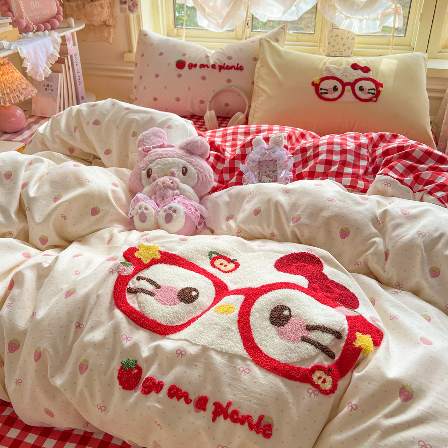 可爱猫咪全棉四件套床品卡通纯棉女孩儿童三件套床单被套床笠被罩