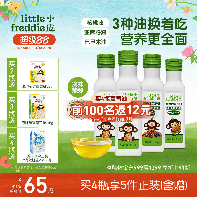 小皮进口核桃油亚麻籽油巴旦木油儿童热炒油搭配婴幼儿宝宝辅食